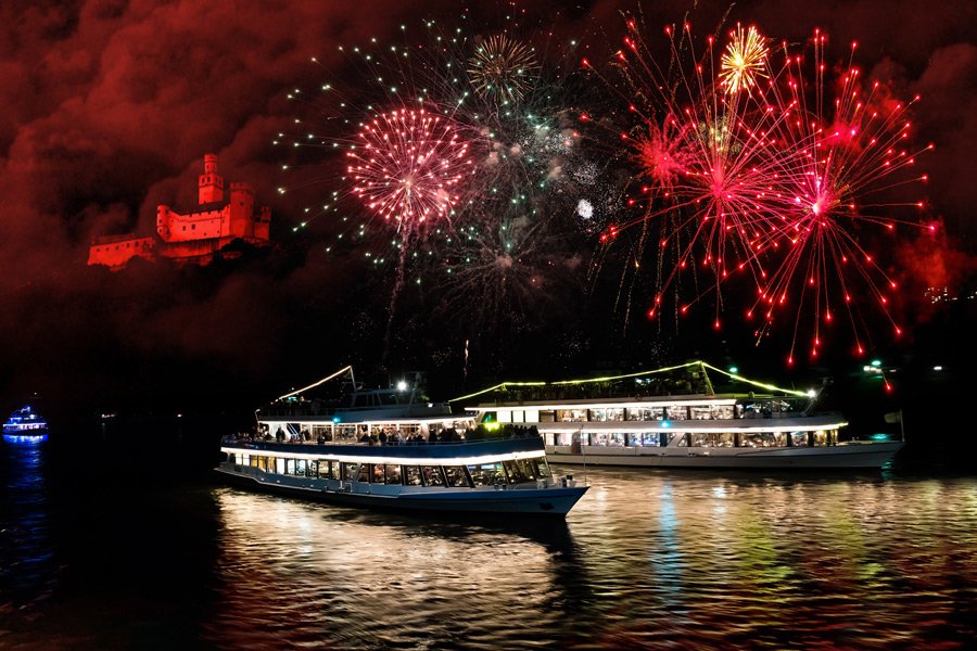 Das größte und berühmteste Feuerwerkspektakel Deutschlands „Rhein in Flammen“ begeistert jedes Jahr tausende Besucher am Ufer des Rheins oder an Bord eines Personenschiffes. Die Fahrt führt vorbei an romantischen Weinorten, trutzigen Burgen und mächtigen Schlössern – ein wunderschönes Erlebnis!