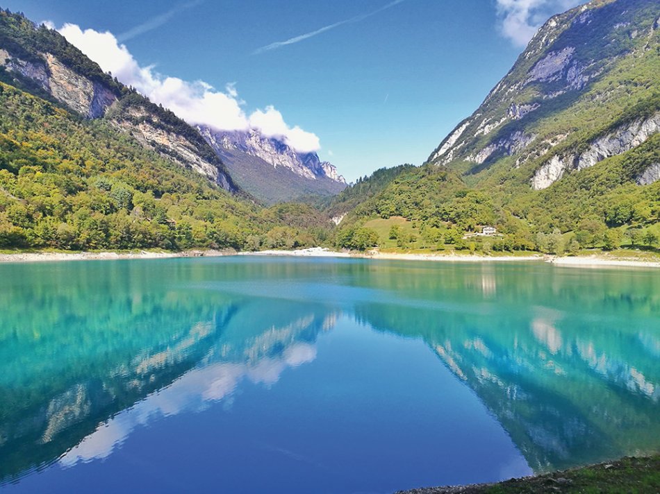 Bustransfer zum Passo del Ballino. Wanderung zum Bergsee Lago di Tenno und weiter ins Künstlerdorf Canale. Imbiss auf einem Bauernhof und weiter zur Burg von Tenno. Von hier zu Fuß oder mit dem Bus nach Riva del Garda.
